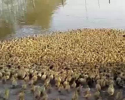 Come ogni anno a Taizhou in Cina si rinnova la tradizione della passeggiata di migliaia di papere che vengono portate da un solo allevatore a fare il bagno per la prima volta in uno stagno.
