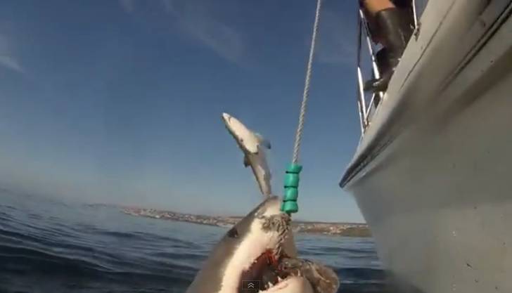 Lo scorso 6 luglio, a Mossel Bay, in Africa del Sud, un signore di nome Remo Sabatini è riuscito a filmare un enorme squalo bianco che voleva mangiare la parte di un tonno attaccata ad una corda.
