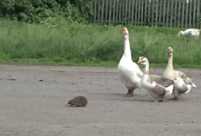 Quello che poteva risultare una curiosità da parte delle oche, presto si trasforma in un comportamento davvero eccezionale. Come se le oche avessero percepito il pericolo al quale si stava esponendo il cucciolo di riccio, non hanno esitato a seguirlo e a proteggerlo come delle guardie del corpo fino a quando non fosse al sicuro dall’altra parte della strada.