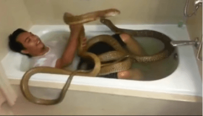 Ha destato molto scalpore il video girato da questo incantatore di serpenti in India, che ha postato un video dove viene ritratto mentre si fa un bagno con due cobra reali velenosissimi. Lui appare tranquillo e sorridente, nonostante il pericolo che, solo in teoria, starebbe correndo. Il motivo di tutto questa apparente tranquillità nasconde però una verità sconcertante, dove ancora una volta, per mano dell’essere umano e delle sue macabre follie di comando e controllo, a rimetterci sono gli animali.