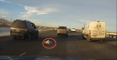 Fortunatamente le automobili in transito hanno avuto la prontezza di frenare, evitando l’investimento del povero cane. In un primo momento, si potrebbe pensare ad un abbandono, ma poco dopo, nel video si nota il Suv accostare e un uomo scende dall’auto, dirigendosi verso il cane, con cautela, per recuperarlo, evitando di fare mosse false, rischiando di farlo scappare, in quanto spaventato.