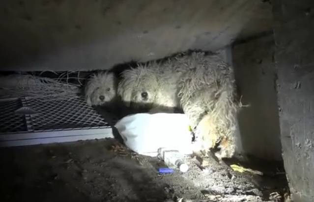 Una scena veramente commovente di queste piccole due creature nascoste nel buio mentre Hagar, armato di pazienza, ha tentato di tranquillizzarle con la voce e dando loro del cibo. Per evitare la fuga, i due volontari hanno poi subito tentato di prendere i cuccioli con l’ausilio di un laccio e fortunatamente l’azione è andata a buon fine. I due cani hanno ceduto e lentamente, non senza resistenze, si sono lasciati prendere.