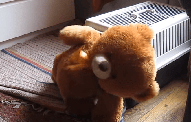 Prendete un cane tignoso e cocciuto, un trasportino come cuccia e un orsacchiotto in peluche: aspettate qualche istante e vedrete scomparire il cane…