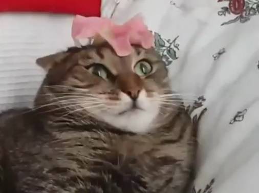 Video imperdibile: mette un fiore in testa al gatto. Ecco la sua reazione