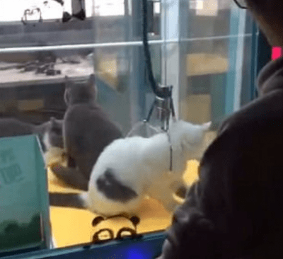 Il filmato ha provocato un’ondata d’indignazione e molti utenti sulle piattaforme cinesi hanno aspramente criticato il commerciante che ha messo all’interno del box di vetro le piccole creature viventi: tre gatti prigionieri. Sul vetro della macchinetta, ci sarebbe anche una scritta che invita a giocare: “Padrone, portami a casa”.